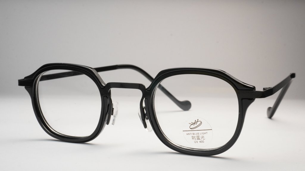 Keywords: Black frame, designer eyeglasses, round square glasses, geometric frames, mixed material eyewear, fashion glasses, Josh glasses, acetate metal frames