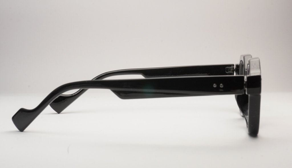 Crafted from thick, polished black acetate, The RUKI is substantial and luxurious to the touch, providing a commanding presence that few frames can match. The pronounced corners and deep, solid finish give these glasses a sculpted, modern-art feel.